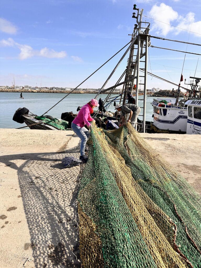 unser Parkplatz zwischen Fischkuttern im Hafen von Tarfaya