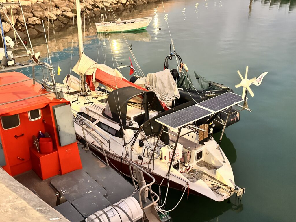 Dann endlich nähert ein kleines Fischerboot mit 4 uniformierten Beamten und einem Schäferhund und legt an der Längsseite von Rupi‘s Boot an. Die Polizisten und der Drogenspürhund inspizieren das Boot gründlich und nach 10 Minuten darf Rupi das Boot verlassen. Nur wie überwindet man die 5 Höhenmeter zwischen Boot und Kai? Ein Polizist lässt eine Strickleiter, die an einem Poller am Kai befestigt ist runter. „Na servas!“ denk ich mir. Rupi zittert sich die instabile Leiter hoch – nun können wir ihn endlich richtig begrüßen. Wir gehen noch in ein Café auf einen Minztee, bevor wir uns auf den Weg zurück zum Boot machen.