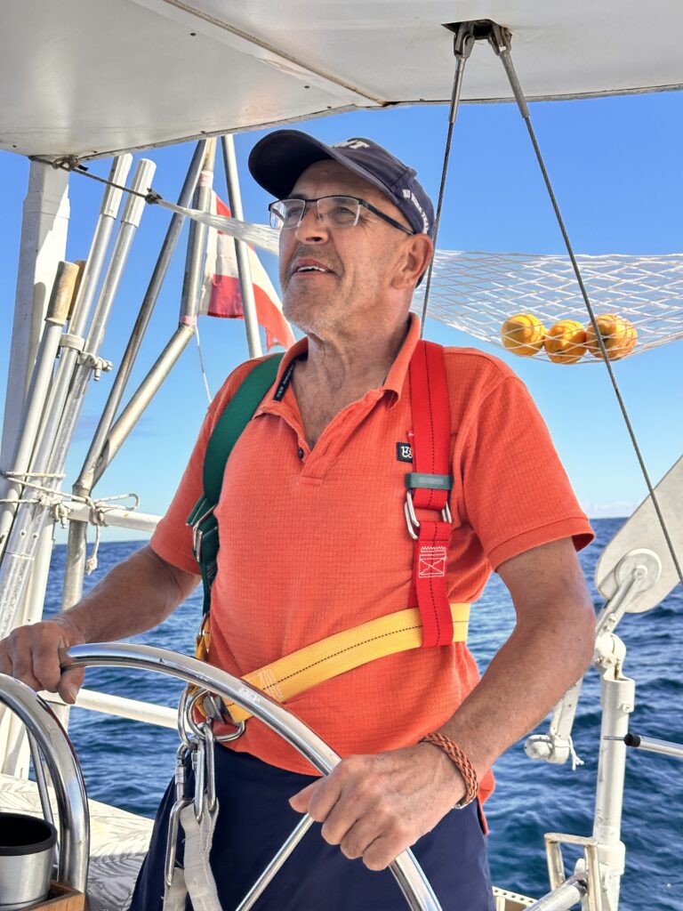 Rupi, unser Kapitän ausgerüstet mit Sicherungsgurt