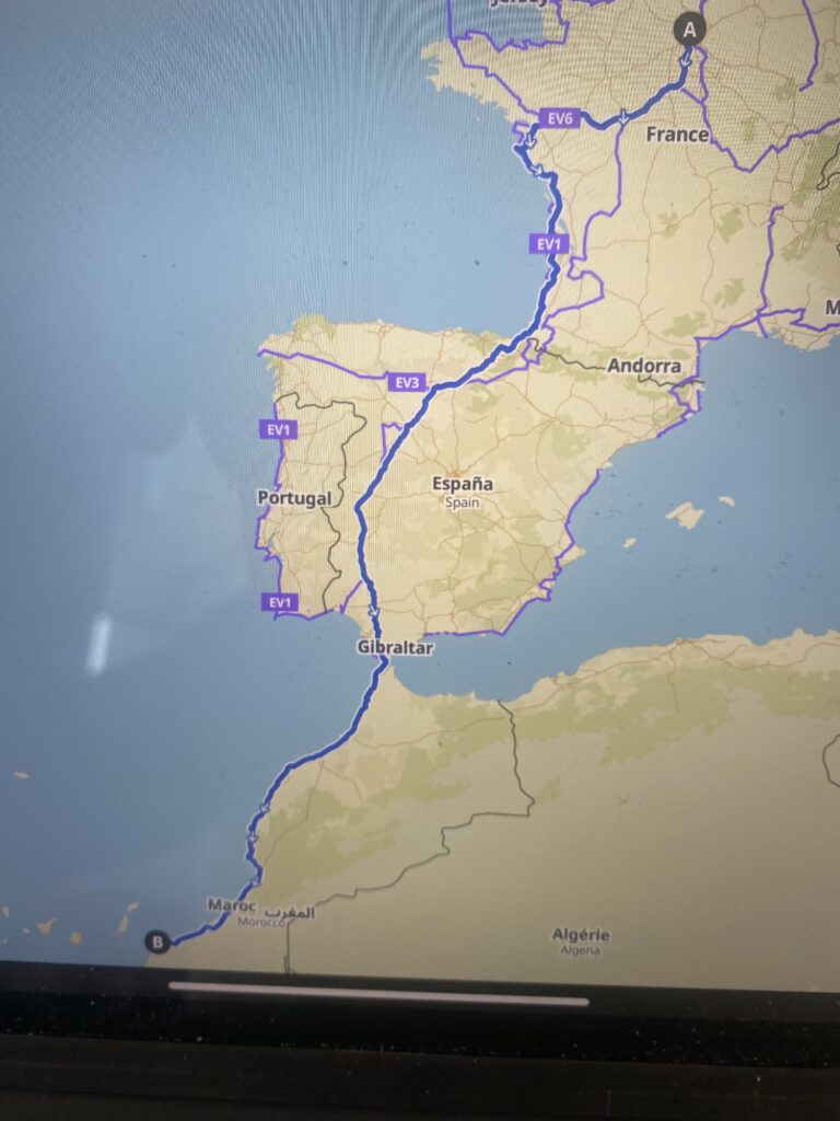 „Du Moni, wir haben nur noch 3.799km vor uns.“ „Na, das werden wir bis Weihnachten locker schaffen.“ kommt von mir zurück. Seit fast 2 Wochen bin ich nun radelnd mit Dieter unterwegs und unser gemeinsames Ziel ist das am Atlantik gelegene Tarfaya im Süden Marokkos in der Sahara.