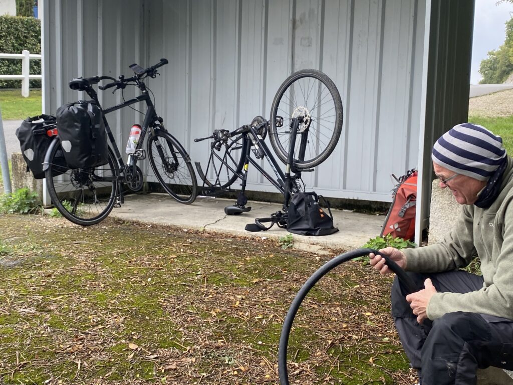 Mein 1. Patschen – zum Glück hab ich einen Radmechaniker dabei