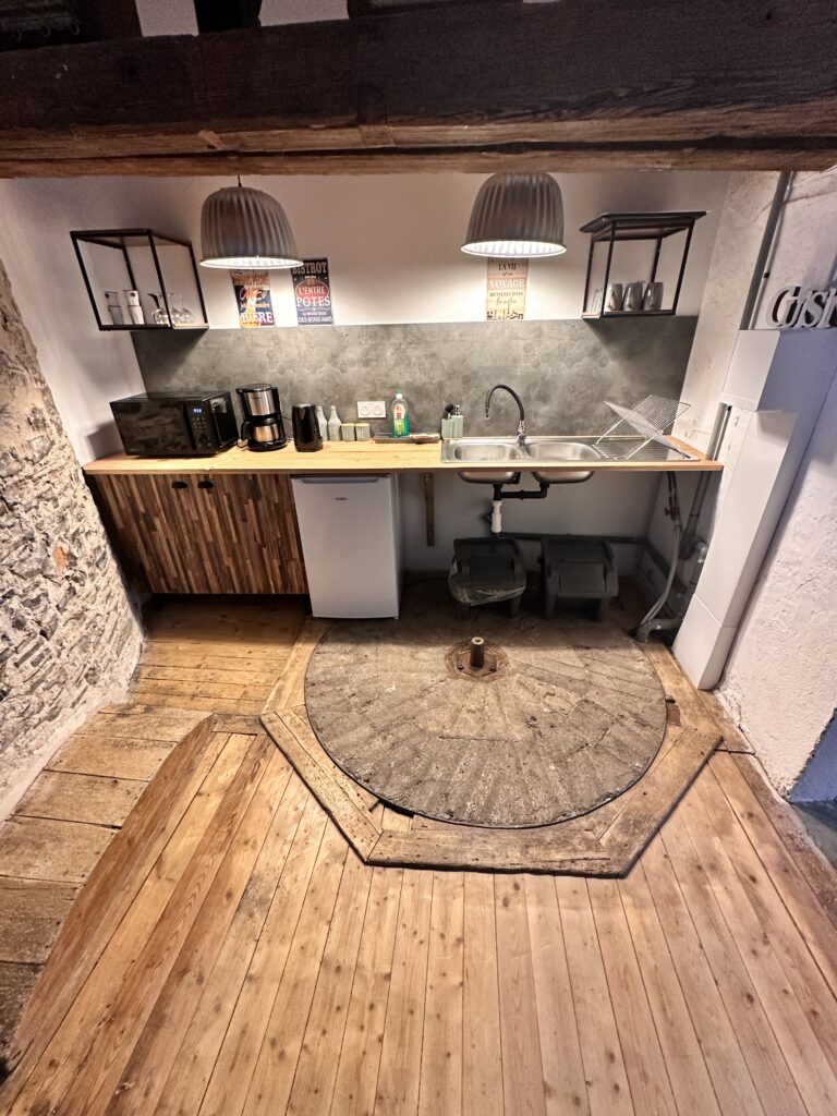 Auch hier sind wir die einzigen Gäste und unser sehr spezielles Zimmer liegt diesmal im 2. Stock. Das spezielle am Zimmer ist, dass das Bett im Boden versenkt ist. Und Bad/WC befinden sich im Gang. „Dieter, wenn ich in der Nacht aufs Klo muss, musst du mit mir mitkommen. Ich trau mich nicht allein.“ „Ach Moni, du Memme.“ Wir kochen dann noch unser Abendessen (es gibt Lachs mit Blattspinat und Salzkartoffeln, dazu eine Flasche Cidre) und dann ab ins Bett. Irgendwann nach Mitternacht meldet sich meine Blase – ich überlege, ob ich alleine aufs Klo gehen soll. Dann stehe ich doch auf und siehe da: Dieter grummelt was vor sich hin und trottet hinter mir her. Ich gehe ins Bad und er wartet draußen vor der Tür. Als ich wieder raus komme, ist er verschwunden. Ich gehe davon aus, dass er zurück ins Schlafzimmer ist – dort ist er aber nicht. Also mache ich mich auf die Suche: neben dem Badezimmer gibt es ein grosses TV-Zimmer und auf der Couch liegt Dieter, das Schlossgespenst und schnarcht vor sich hin. „Na, du bist mir ein Beschützer!“